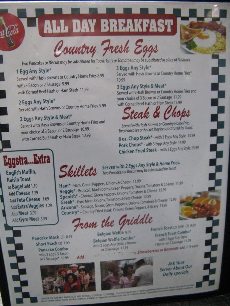 With eggs any style, bacon or sausage